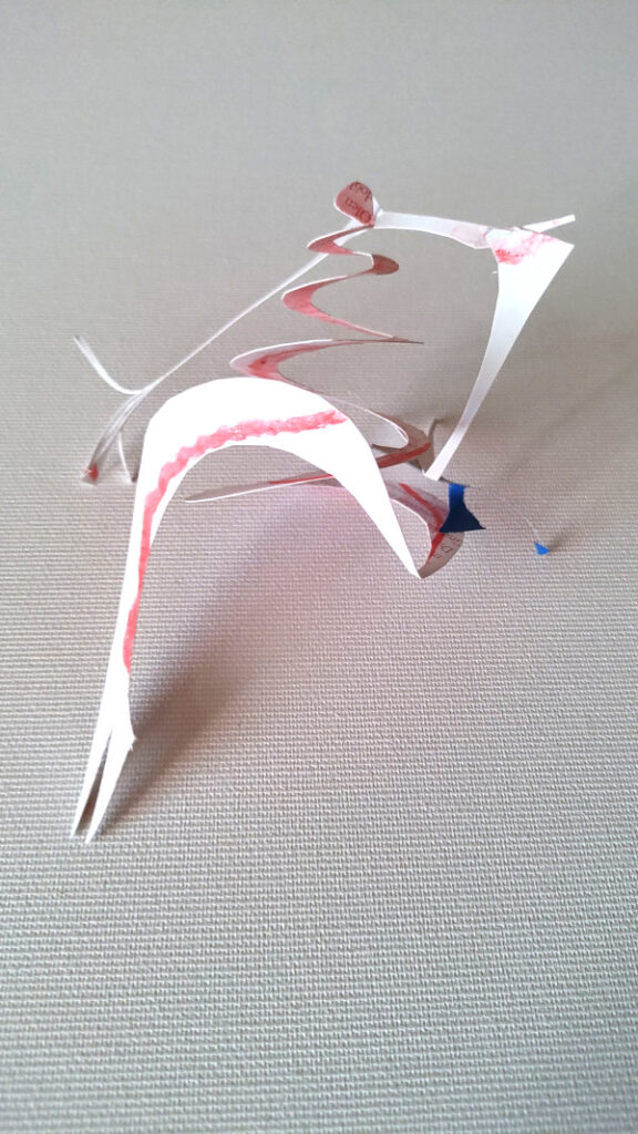 ballerina, ca 7x7x7cm, papier, klebeband, kleber, stifte, 2025